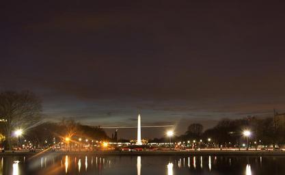 Keywords: washington dc night evening sky clouds washington monument landmark destinations historical famous lights lighting reflecting pool water reflections vehicles traffic urban city cities