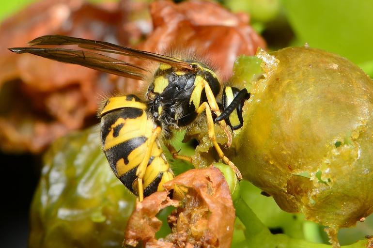 Keywords: wasp eats grapes wasp on grapes grape wasp fruit german wasp