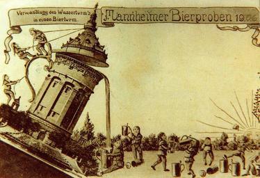 Keywords: Wasserturm Mannheim 1906 Mannheimer Bierproben.jpg water tower in Mannheim Germany The text reads Turning the water tower into a beer tower Mannheim beer tasting 1906 torre d'aigua de Mannheim El text diu Transformació de la torre d'aigua en una torre de cervesa Degustació de cerveses de Mannheim del 1906 own uploaded by / pujat per Immanuel Giel 1906 Uploaded by Immanuel Giel-- 13 12 26 April 2006 UTC PD-old Beer drinking in art Towers in art Tankards 1906 in Germany Mannheim in the 1900s Mannheimer Wasserturm |