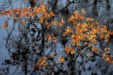 Keywords: water current background element nature macro life river leaves yellow branch drops rain season autumn