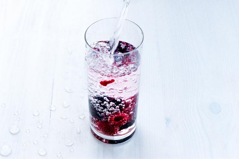 Keywords: water drops wet drops of water transparency drop of rain rosa pink fruit diet health raspberries blackberries cup wood