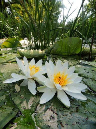Keywords: water lilies green pond water lake rose white flowers nuphar lutea blossom bloom nature lake biotope aquatic plants