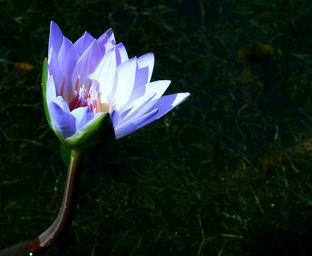 Keywords: water lily water plants blossoms lilies white petals blooming dark background bright blooms flowering green leaves green background floral fleurs aquatic evening night illuminated macro still life blue pink shades