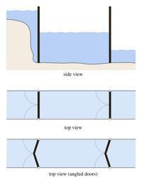 Keywords: Water lock door principle.svg en A simple series of diagrams showing a water lock and two possible arrangements for the position of the doors 2015-04 own Olivier Cleynen other versions cc-zero SVG physics Uploaded with UploadWizard Diagrams in English Locks water transport