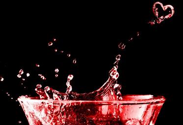 Keywords: water red heart glass spray inject drip spill over