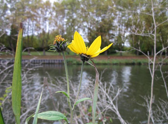 Keywords: water trees country countryside topinambur plant plants flower flowers greenery flora herbage bloom blossom floret stem beautiful colorful nature outside outdoors spring summer lovely pretty macro close-up