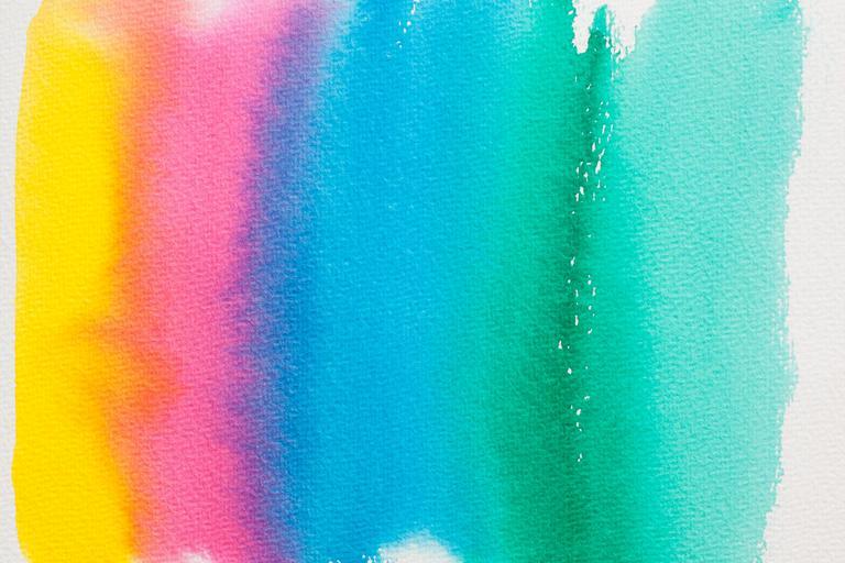Keywords: watercolour painting technique soluble in water not opaque color image color sketch yellow pink blue green cheerful serene fund background handmade paper