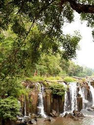 Keywords: waterfall falls jungle water tropical forest natural environment four thousand islands laos
