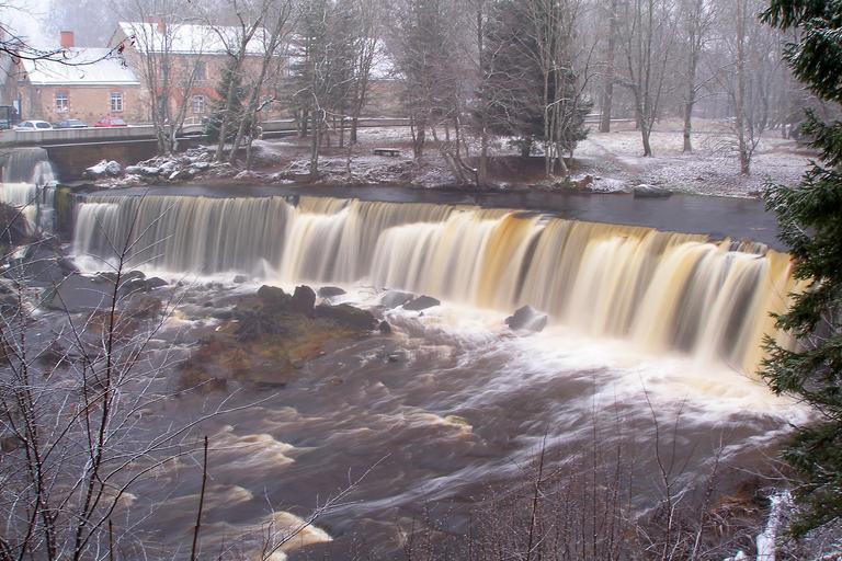 Keywords: waterfall flowing river cascade stream landscape tree outdoors peaceful scenic