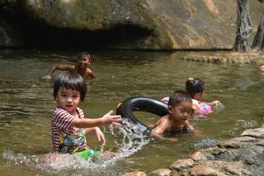 Keywords: waterfall kids cute summer the swimming pool river