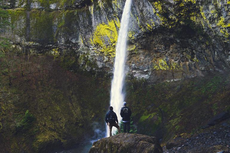 Keywords: waterfall mountain hikers nature water landscape stream environment flow scenery peaceful cascade adventure scenic hiking