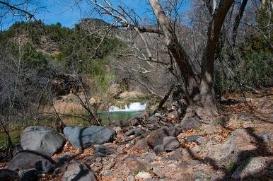 | Keywords: arizona coconino national forest coconinonationalforest forest service forestservice fossil creek fossilcreek red rock ranger district redrockrangerdistrict tonto national forest tontonationalforest usfs canyon creek forest outdoors riparian water camp verde campverde united states unitedstates outdoor Fossil Creek seems to appear out of nowhere, gushing 20,000 gallons a minute out of a series of springs at the bottom of a 1,600 foot deep canyon. Over the years these calcium laden waters have laid down huge deposits of a type of limestone called travertine. That rock-like substance encases whatever happens to fall into the streambed, forming the fossils for which the area is named. Fossil Creek is one of two "Wild and Scenic" rivers in Arizona. This special designation was achieved when the Irving power plant was decommissioned, and removal of flume and dam on the creek allowed this magnificent creek to once again flow freely through Arizona's arid landscape. Most people come to Fossil Creek to sunbathe, wade, hike and birdwatch. It's also a great place to take photographs. The lushness of the riparian area strikes a sharp contrast to the brittle desert that surrounds it. Increasing popularity has led to the Coconino and Tonto National Forests to implement a parking permit reservation system in 2016. Reserved parking permits give visitors the peace of mind knowing they'll have a spot waiting for them in this remote location. Many visitors drive two or three hours to get to the creek. The final descent to the creek at the bottom of a canyon is on an extremely rough, rocky jeep road. Photo by Deborah Lee Soltesz, March 2, 2016. Credit: USFS Coconino National Forest. Learn more about visiting Fossil Creek, Fossil Springs Wilderness, and the Coconino National Forest. Fossil Creek seems to appear out of nowhere, gushing 20,000 gallons a minute out of a series of springs at the bottom of a 1,600 foot deep canyon. Over the years these calcium laden waters have laid down huge deposits of a type of limestone called travertine. That rock-like substance encases whatever happens to fall into the streambed, forming the fossils for which the area is named. Fossil Creek is one of two "Wild and Scenic" rivers in Arizona. This special designation was achieved when the Irving power plant was decommissioned, and removal of flume and dam on the creek allowed this magnificent creek to once again flow freely through Arizona's arid landscape. Most people come to Fossil Creek to sunbathe, wade, hike and birdwatch. It's also a great place to take photographs. The lushness of the riparian area strikes a sharp contrast to the brittle desert that surrounds it. Increasing popularity has led to the Coconino and Tonto National Forests to implement a parking permit reservation system in 2016. Reserved parking permits give visitors the peace of mind knowing they'll have a spot waiting for them in this remote location. Many visitors drive two or three hours to get to the creek. The final descent to the creek at the bottom of a canyon is on an extremely rough, rocky jeep road. Photo by Deborah Lee Soltesz, March 2, 2016. Credit: USFS Coconino National Forest. Learn more about visiting Fossil Creek, Fossil Springs Wilderness, and the Coconino National Forest. |