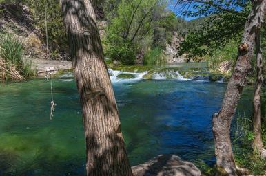 Keywords: arizona coconino national forest coconinonationalforest forest service forestservice fossil creek fossilcreek k20d national forest nationalforest pentax k20d pentaxk20d red rock ranger district redrockrangerdistrict tonto national forest tontonationalforest usfs waterfall trail waterfalltrail canyon desert forest hiking outdoors spring springtime trail camp verde campverde united states unitedstates outdoor tree plant A large, natural waterfall on Fossil Creek is the destination of an easy, one mile hike on Waterfall Trail. A large, deep pool at the base of the fall is a popular swimming hole. Fossil Creek produces 20,000 gallons of water a minute from a series of springs at the bottom of a 1,600 foot deep canyon. This permanent water source has created a stunningly beautiful, green riparian zone rich with flora and fauna at the bottom of this arid canyon in Arizona's high desert. Travertine deposits encase whatever happens to fall into the streambed, forming the fossils for which the area is named. These deposits create deep pools along the length of the creek, providing opportunities to find more secluded swimming holes than the popular pool at the waterfall. Fossil Creek is one of two "Wild and Scenic" rivers in Arizona. This designation was achieved when the Irving power plant was decommissioned, and removal of flume and dam on the creek allowed the creek to flow free. Increasing popularity has led to the Coconino and Tonto National Forests to implement a parking permit reservation system in 2016. Reserved parking permits allow visitors to have a parking spot available in their chosen parking lot. Many visitors drive two or three hours to get to the creek. The final descent to the creek at the bottom of a canyon is on an extremely rough, rocky jeep road. In prior years, the area would often be closed to entry when it reached capacity, and potential visitors would be turned away after the long, difficult drive. Photo by Deborah Lee Soltesz, May 4, 2016. For trail and recreation information, see Fossil Creek, Fossil Springs Wilderness, and the Coconino National Forest. A large, natural waterfall on Fossil Creek is the destination of an easy, one mile hike on Waterfall Trail. A large, deep pool at the base of the fall is a popular swimming hole. Fossil Creek produces 20,000 gallons of water a minute from a series of springs at the bottom of a 1,600 foot deep canyon. This permanent water source has created a stunningly beautiful, green riparian zone rich with flora and fauna at the bottom of this arid canyon in Arizona's high desert. Travertine deposits encase whatever happens to fall into the streambed, forming the fossils for which the area is named. These deposits create deep pools along the length of the creek, providing opportunities to find more secluded swimming holes than the popular pool at the waterfall. Fossil Creek is one of two "Wild and Scenic" rivers in Arizona. This designation was achieved when the Irving power plant was decommissioned, and removal of flume and dam on the creek allowed the creek to flow free. Increasing popularity has led to the Coconino and Tonto National Forests to implement a parking permit reservation system in 2016. Reserved parking permits allow visitors to have a parking spot available in their chosen parking lot. Many visitors drive two or three hours to get to the creek. The final descent to the creek at the bottom of a canyon is on an extremely rough, rocky jeep road. In prior years, the area would often be closed to entry when it reached capacity, and potential visitors would be turned away after the long, difficult drive. Photo by Deborah Lee Soltesz, May 4, 2016. For trail and recreation information, see Fossil Creek, Fossil Springs Wilderness, and the Coconino National Forest.