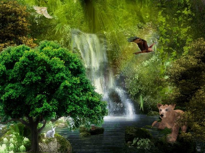 Keywords: waterfall water rio pond forest vegetation mata atlantica nature landscape bird animals flying