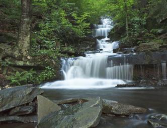 Keywords: waterfall water rocks fall stream cascade green scenery nature wet flowing summer foliage fresh motion creek amazing paradise