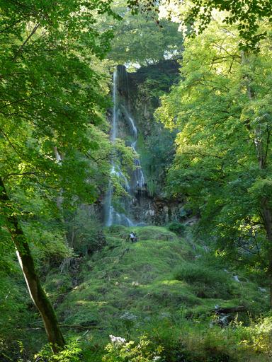 Keywords: waterfall water urach waterfall forest green trees idyll swabian alb alb alb eaves urach