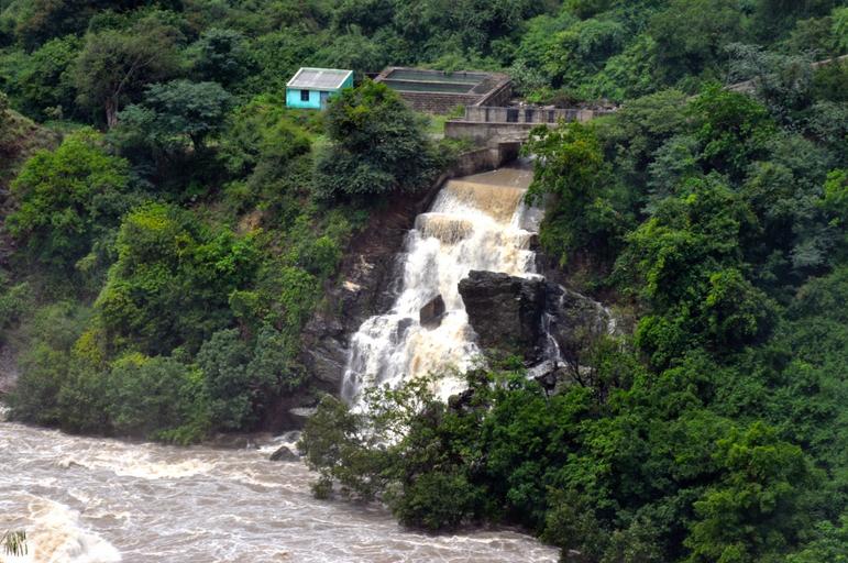 Keywords: waterfalls mountains trees greenery plants greens water white splashes splashing cascade flowing hills forest wild nature natural rivers streams india houses building scenic scenery landscapes