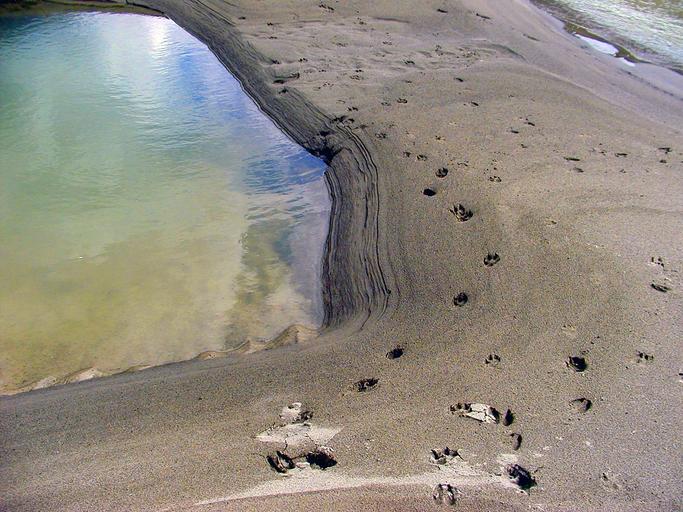 Keywords: waterhole animal tracks sand tracks trail pugmarks sediments washed sea