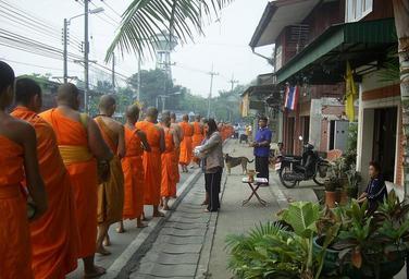 Keywords: Watpailom 04.jpg พระภิกษุุในพระพุทธศาสนากำลังบิณฑบาต Phrae Thailand own 2007 Photo by User Tevaprapas 2006 Buddhist monks of Thailand