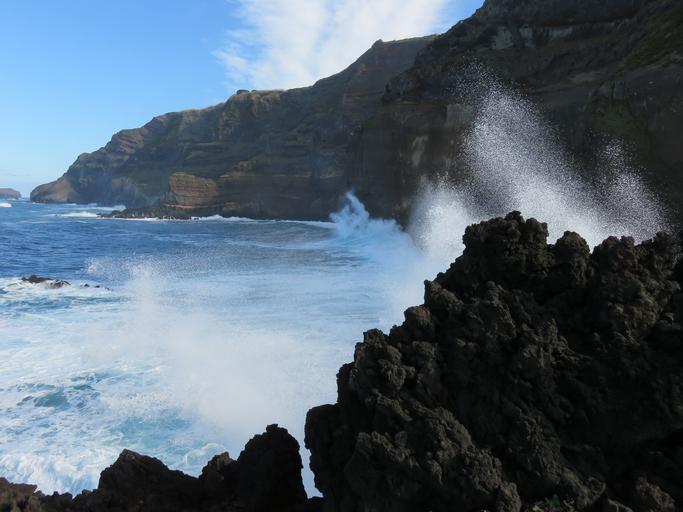 Keywords: wave cliff crash spray coast volcanic rock ocean sea rugged high