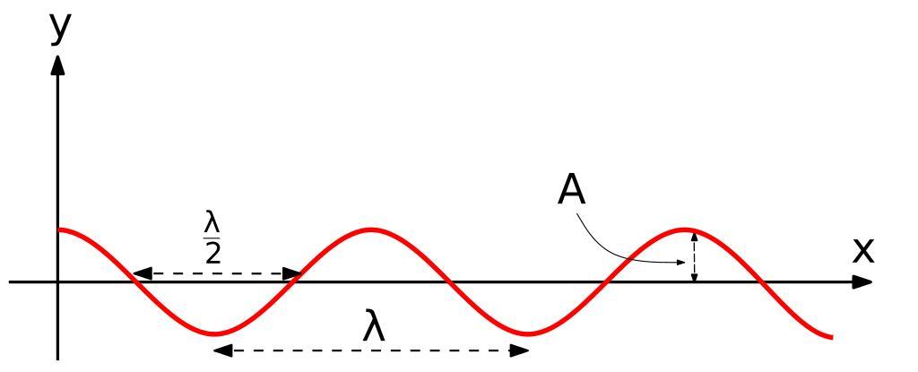 Keywords: Wave new.svg en A schematic cosine wave with wavelength and amplitude marked own Pelegs 2009-11-25 Wavelength diagrams Amplitude Transverse wave