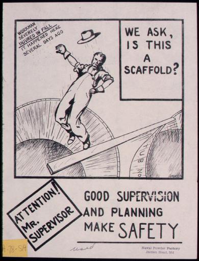 | Keywords: We ask, is this a good scaffold^ Attention^ Mr. Supervisor. Good supervision and planning make safety. - NARA - 535273.jpg Scope and content General notes 535273 Local identifier 179-WP-1423 Office for Emergency Management War Production Board 01/1942 - 11/03/1945 Still Picture Records Section Special Media Archives Services Division NWCS-S National Archives at College Park 8601 Adelphi Road College Park MD 20740-6001 other date circa 1942 1943 Record group Record Group 179 Records of the War Production Board 1918 - 1947 Record group ARC 508 War Production Board compiled 1942 - 1943 Series ARC 533858 File unit File unit ARC Variant control numbers NAIL Control Number NWDNS-179-WP-1423 Other versions <gallery> File We_ask _is_this_a_good_scaffold _Attention _Mr _Supervisor _Good_supervision_and_planning_make_safety _-_NARA_-_535273 tif tif File We_ask _is_this_a_good_scaffold _Attention _Mr _Supervisor _Good_supervision_and_planning_make_safety _-_NARA_-_535273 jpg jpg </gallery> NARA-cooperation PD-USGov World War II posters from the United States |
