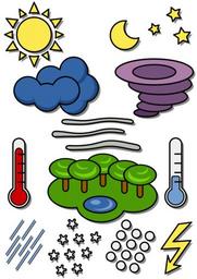Keywords: weather symbols temperature rain snow lightning sun storm tornado clouds nature trees forest lake