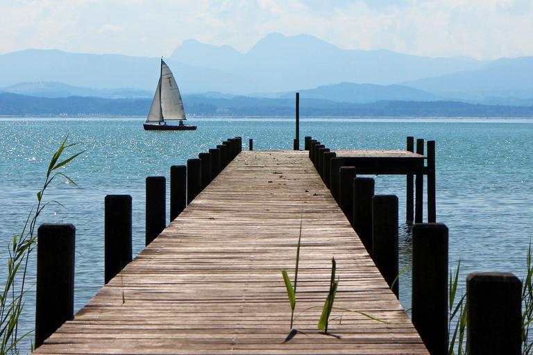Keywords: web boardwalk horizon water lake sailing vessel nature landscape chiemsee mood view beautiful still blue idyll