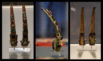 | Keywords: Web Köln Museum für Ostasiatische Kunst 03012015 Nail Protector 4.jpg en Pair of finger nail protectors front- side- and back- view ; brass sheet hammered inlaid semi precious stones China Qing Dynasty 1900-1910 Museum für Ostasiatische Kunst in Cologne gift by Helga Fisher 2015-01-03 13 20 07 own Vassil other versions cc-zero Museum für Ostasiatische Kunst Köln Nails Metalwork of the Qing Dynasty Uploaded with UploadWizard Brass jewellery | ||||