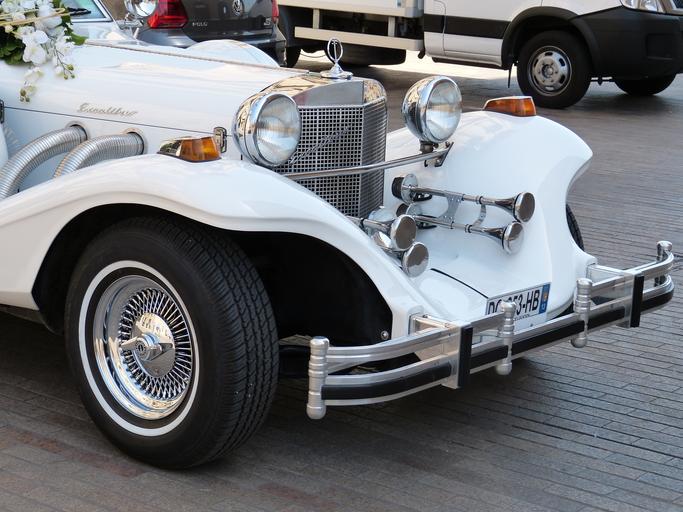 Keywords: wedding auto flowers limousine wedding car vehicle marry romantic oldtimer white floral decorations