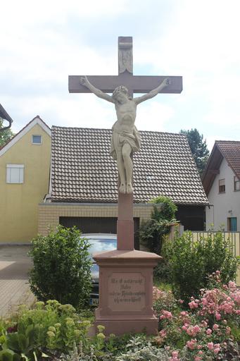 Keywords: Wegkreuz Helmstadt Würzburger Straße 28.jpg de Sandstein Ende 19 Jahrhundert D-6-79-144-12; stand ursprünglich gegenüber an der Ecke Würzburger Straße / Kappelgasse wurde jedoch bei einer PKW-Kollision zu Fall gebracht Sockelinschrift Es ist vollbracht / Vater / In deine Hände empfehle / ich meinen Geist Stifter unbekannt 2016-07-16 15 57 28 own Michael Schätzlein other versions 49 76019 9 71033 cc-zero Wayside crosses in Landkreis Würzburg Cultural heritage monuments in Helmstadt |