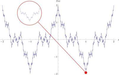 Keywords: WeierstrassFunction.svg en Plot of the Weierstrass function A section of the plot is zoomed in on to illustrate the fractal nature of the function The plot was generated using Mathematica and exported to SVG I first made a plot of the region and then a plot of a much smaller section around the red point on the image With the use of Inkscape I was able to put the two in the same SVG file This file is an Inkscape SVG not a plain SVG Own Eeyore22 2008-10-26 http //commons wikimedia org/wiki/Image Weierstrass_function gif ValidSVG Weierstrass function |