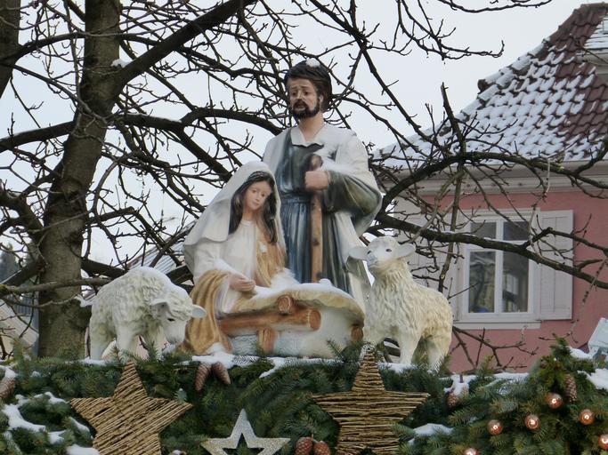 Keywords: weihnachtasmarkt statue maria joseph jesus crib fig santon scene christian bible christ believe holy christmas holzfigur religion virgin