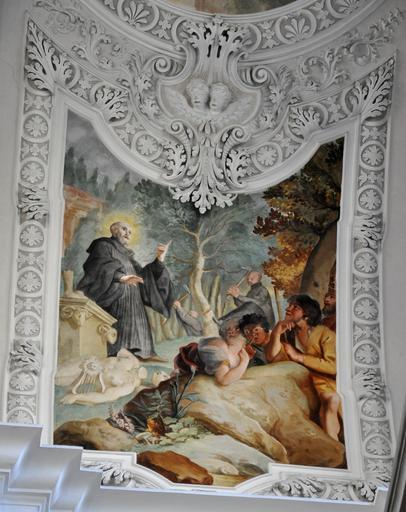 | Keywords: Weingarten Fresko Joch3 Benediktsleben Nord3.jpg Weingarten Württemberg Basilika St Martin und Oswald Fresken von Cosmas Damian Asam 1718 “1720<br /> Fresken im 3 Langhausjoch Thema Leben des hl Benedikt von Nursia; nördliche Quertonne Predigt des hl Benedikt bei einem zerstörten Apollo-Altar own own photograph 2011-03 Creator Cosmas Damian Asam Photo Andreas Praefcke Frescos in Basilika St Martin Weingarten Photos by User AndreasPraefcke Frescos of Benedict of Nursia Preaching in art |