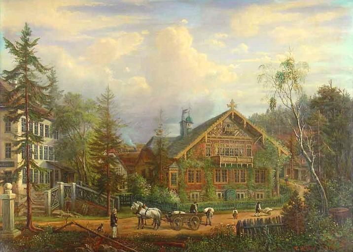 Keywords: Weipert Mühle 1875.jpg Weipert das Mühlengebäude der Fa Schmidl 1875 Oil on canvas 73 x 100 cm http //auktionshaus-rieber de/ Paintings of watermills Vejprty PD-Art
