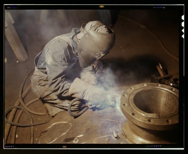 | Keywords: Welder making boilers.jpg Welder making boilers for a ship Combustion Engineering Co Chattanooga Tenn Color transparency Library of Congresshttp //hdl loc gov/loc pnp/fsac 1a35230 1942-06 Alfred T Palmer United States Farm Security Administration Compressed and reduced size version of File Welder making boilers tif PD-USGov Photographs by Alfred T Palmer Boiler construction Combustion Engineering Corporation FSA-OWI June 1942 in the United States Manual metal arc welding 1942 in Tennessee 1942 photographs People at work in the United States People facing right People of the United States in 1942 Welders World War II color photographs of the US Homefront |