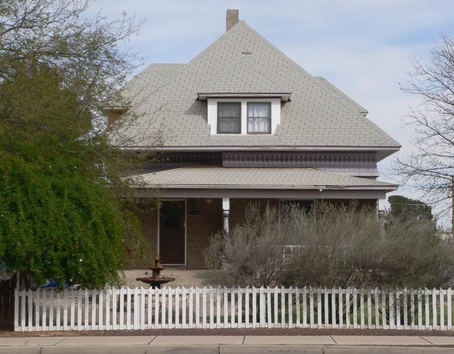 Keywords: Welker house (Safford AZ) from W 1.JPG en James R Welker house located at 1127 Central Avenue northeast corner of Central and 12th Street in Safford Arizona; seen from the west across Central 2015-03-11 17 18 13 own Ammodramus other versions cc-zero Pictures by Ammodramus James R Welker house Safford Arizona Uploaded with UploadWizard |