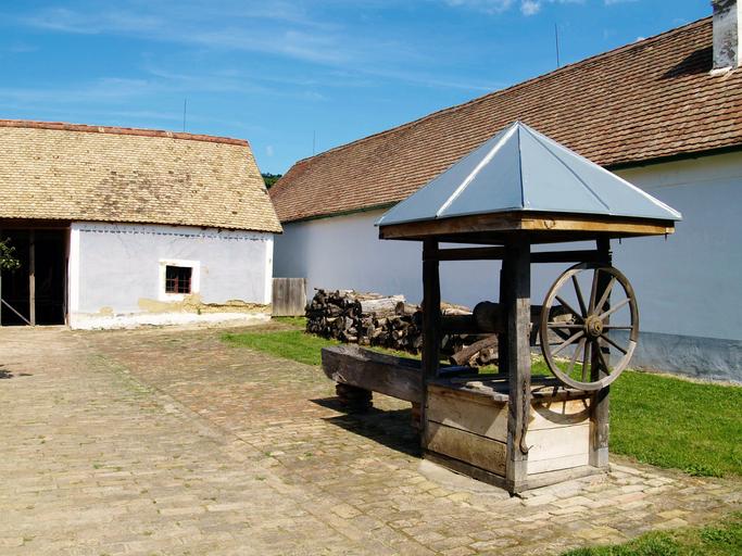 Keywords: well fount rural water fountain drink house building village farm hungary