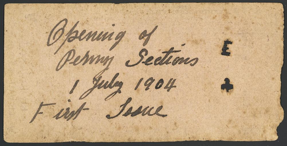 | Keywords: writing text document texture photo border One penny ticket with two clips. Wording states: "Please destroy this ticket on leaving car"; "Not transferable" Routes and stops are listed "Te Aro terminus to Gov. Railway Station; Gov. Railway Station to Thorndon terminus; Bus (from electric car) to General Post Office; Thorndon terminus to Gov. Railway Station; Gov. Railway Station to Te Aro terminus; Bus, Gen. Post Office to electric car. Inscriptions: Inscribed - Verso - [Handwritten in ink]: Opening of penny sections, 1 July 1904. First issue. . Quantity: 1 colour art print(s). Physical Description: Letterpress, on pale pink clipped ticket, 92 x 47 mm, with performation at lower edge Wellington Corporation Tramways :A No. 7722. Wellington Corporation Horse Tramways. Te Aro terminus to Gov. Railway Station ... 1d. Lankshear [printer. Opening of penny sections, 1 July 1904. First issue]. [Ephemera including tickets and and timetables for the Wellington tram service. 1900-1929]. Ref: Eph-A-TRAM-Wellington-1904-02. Alexander Turnbull Library, Wellington, New Zealand. natlib.govt.nz/records/22697073 One penny ticket with two clips. Wording states: "Please destroy this ticket on leaving car"; "Not transferable" Routes and stops are listed "Te Aro terminus to Gov. Railway Station; Gov. Railway Station to Thorndon terminus; Bus (from electric car) to General Post Office; Thorndon terminus to Gov. Railway Station; Gov. Railway Station to Te Aro terminus; Bus, Gen. Post Office to electric car. Inscriptions: Inscribed - Verso - [Handwritten in ink]: Opening of penny sections, 1 July 1904. First issue. . Quantity: 1 colour art print(s). Physical Description: Letterpress, on pale pink clipped ticket, 92 x 47 mm, with performation at lower edge Wellington Corporation Tramways :A No. 7722. Wellington Corporation Horse Tramways. Te Aro terminus to Gov. Railway Station ... 1d. Lankshear [printer. Opening of penny sections, 1 July 1904. First issue]. [Ephemera including tickets and and timetables for the Wellington tram service. 1900-1929]. Ref: Eph-A-TRAM-Wellington-1904-02. Alexander Turnbull Library, Wellington, New Zealand. natlib.govt.nz/records/22697073 |