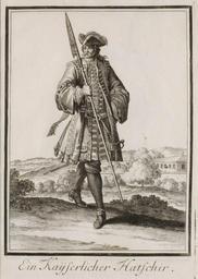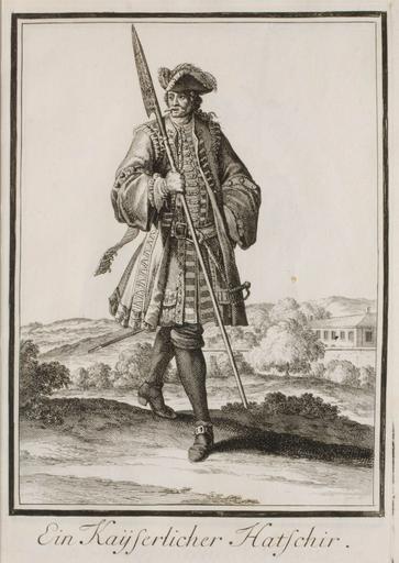 Keywords: Welt-Galleria T027.jpg Neu-eröffnete Welt-Galleria Nürnberg 1703 <br /> 27 Ein Kayserlicher Hatschir Herzog August Bibliothek Wolfenbüttel<br />http //diglib hab de/drucke/wt-4f-93/start htm 1703 Christoph Weigel after Caspar Luyken Creator Christoph Weigel Creator Caspar Luyken Author died more than 70 years ago - public domain PD-old-100 Neu-eröffnete Welt-Galleria Halbers in art Military of the Holy Roman Empire |