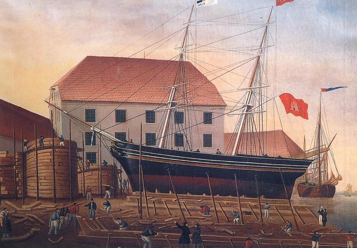 | Keywords: Werft Johann Lange - Vegesack - 1837.jpg en Painting by an unknown artist showing the former shipyard of Johann Lange in Bremen-Vegesack Germany with the new build brigg Emmy de Gemälde eines unbekannten Künstlers dass die ehemalige Werft von Johann Lange in Bremen-Vegesack mit der neu gebauten Brigg Emmy zeigt Klassizismus in Bremen Formen bürgerlicher Kultur Jahrbuch der Wittheit zu Bremen 1993/1994 Bremen 1993 Author 1837 PD-old-100 Johann Lange 1837 paintings 1837 in Bremen Vegesack Bremen Bremen in art Weser in art Weser in Bremen 19th-century sailing ships in paintings Shipbuilding in art Ship cradles Brigs in art Vegesacker Hafen Tall ships of Germany |