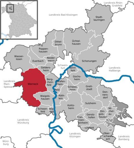 Keywords: Werneck in SW.svg DeLocMaps Werneck Landkreis Schweinfurt District of Schweinfurt Schweinfurt district L'arrondissement de Schweinfurt Arrondissement de Schweinfurt Bayern Bavière Bavaria Adobe Illustrator <br/> own based on <br/> File Municipalities_in_Bavaria svg by TUBS<br/> Bavaria_AM svg by TUBS 2010-04-26 Hagar66 based on work of TUBS Hagar66/licensesection Attribution TUBS/Credits Locator maps of municipalities in Landkreis Schweinfurt Werneck |