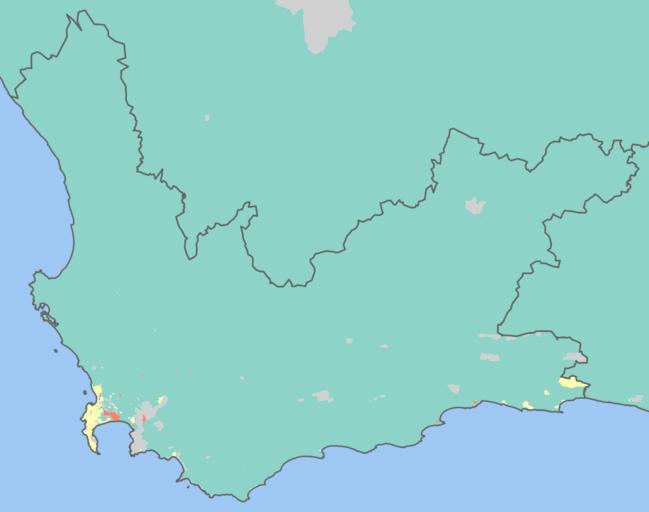 Keywords: Western Cape 2001 dominant language map.svg 8dd3c7 Afrikaans ffffb3 English fb8072 isiXhosa d0d0d0 No language dominant Statistics South Africa's Census 2001 is the source of the basic population data The map results from my own processing of the data Htonl 2010-02-10 Htonl The following license applies to the population data on which the map is based http //www statssa gov za/copyrightdisclaimer asp the user acknowledges Stats SA as the source of the basic data wherever they process apply utilise publish or distribute the data and also that they specify that the relevant application and analysis where applicable result from their own processing of the data The following tag applies to the map itself Linguistic maps of South Africa Maps of the Western Cape Maps by Htonl |