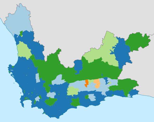Keywords: Western Cape provincial election 2014 winner by ward.svg Western Cape the party taking the largest number of votes in the 2014 provincial legislature election A lighter shade indicates a non-majority plurality legend 33a02c African National Congress majority b2df8a African National Congress plurality 1f78b4 Democratic Alliance majority a6cee9 Democratic Alliance plurality ff7f00 Independent Civic Organisation of South Africa majority fdbf6f Independent Civic Organisation of South Africa plurality own Htonl 2014-05-17 2014 South African general election maps Maps of the Western Cape Maps by Htonl Cc-zero |