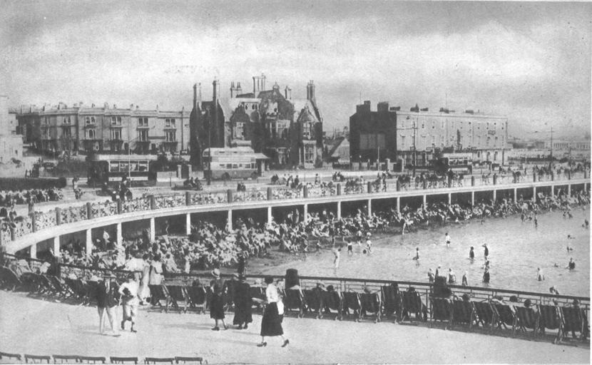 Keywords: Weston-super-Mare Marine Lake with trams and bus.jpg en The Marine Lake in Weston-super-Mare Somerset England It was created in 1929 by building a second causeway to Knightstone Island thereby creating a sea water lake; the tide at Weston-super-Mare has the second highest range in the world and so swimming in the sea is only practical for a short period either side of high tide On the road above the collonade are Weston-super-Mare trams and a Bristol bus competing for a share of the trade on the sea front route between the Old Pier and the Sanatorium This only happened in the summers of 1934 1935 and 1936 after which the bus operater bought out and shut down the tram system A postcard in the Geof Sheppard Collection author ~ 1935 File Weston-super-Mare Marine Lake with tram and bus cropped jpg PD-old Weston-super-Mare Postcards of Weston-super-Mare Weston-super-Mare Tramways Tram transport in the 1930s Black and white photographs of trams Marine lakes |