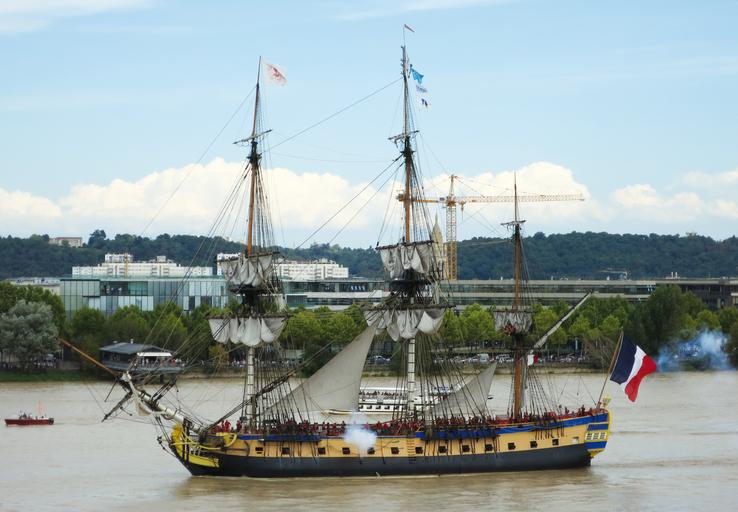 Keywords: wharf maritime navigation boats frigate sailboat hermione france bordeaux garonne