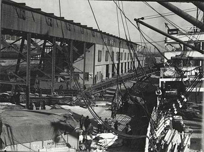 Keywords: archives state records nsw staterecordsnsw newsouthwales blackandwhite wharf glebe island glebeisland sydney grain ship monochrome black and white Grain being loaded onto a ship by a portable conveyor belt at wharf No.8-9, Glebe Island Dated: c.1937 Digital ID: 9856_a017_A017000079 Rights: www.records.nsw.gov.au/about-us/rights-and-permissions We'd love to hear from you if you use our photos. Many other photos in our collection are available to view and browse on our website using Photo Investigator. Grain being loaded onto a ship by a portable conveyor belt at wharf No.8-9, Glebe Island Dated: c.1937 Digital ID: 9856_a017_A017000079 Rights: www.records.nsw.gov.au/about-us/rights-and-permissions We'd love to hear from you if you use our photos. Many other photos in our collection are available to view and browse on our website using Photo Investigator. |