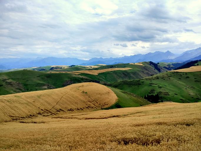 Keywords: wheat dark clouds rain hillside grassland