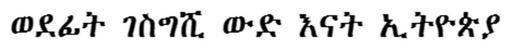 Keywords: Whedefit Gesgeshi Woude Henate Ethiopia (Title).png en Whedefit Gesgeshi Woude Henate Ethiopia the title of national anthem of Ethiopia Use font Abyssinica SIL http //scripts sil org/cms/scripts/page php site_id nrsi item_id AbyssinicaSIL_Download th Whedefit Gesgeshi Woude Henate Ethiopia ชื่อ พลงของ พลงชาติ อธิโอ ปีย ใช้แบบอักษร Abyssinica SIL http //scripts sil org/cms/scripts/page php site_id nrsi item_id AbyssinicaSIL_Download งานของ ู้อัปโหลด อง own work by uploader Octahedron80 2009-01-08 National anthem of Ethiopia Rendered texts |