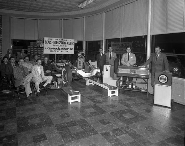 | Keywords: library of virginia libraryofvirginia richmond va richmondva adolph b. rice studio adolphbricestudio automobile blackandwhite monochrome indoor black and white Title: Wheel alignment mechanics, Bear Manufacturing Co. clinic at Richmond Auto Parts Creator: Adolph B. Rice Studio Date: n.d. Identifier: Rice Collection 3619A Format: 1 negative, safety film, 4 x 5 in. Rights Info: No known restrictions on publication. Repository: Library of Virginia, Prints and Photographs, 800 E. Broad St., Richmond, VA, 23219, USA, digitool1.lva.lib.va.us:8881/R Title: Wheel alignment mechanics, Bear Manufacturing Co. clinic at Richmond Auto Parts Creator: Adolph B. Rice Studio Date: n.d. Identifier: Rice Collection 3619A Format: 1 negative, safety film, 4 x 5 in. Rights Info: No known restrictions on publication. Repository: Library of Virginia, Prints and Photographs, 800 E. Broad St., Richmond, VA, 23219, USA, digitool1.lva.lib.va.us:8881/R |